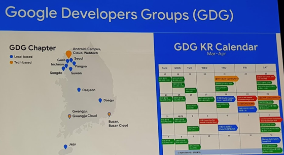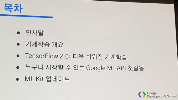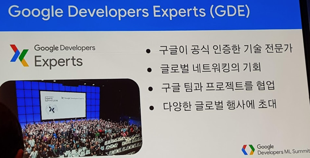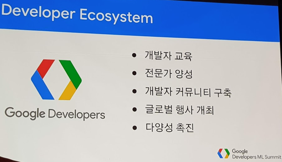 - 오늘 발표할 내용에 대한 설명과 구글이 한국에서 개발자 환경 생태 구축을 위해 노력을 하고 있고, 다양한 지원 프로그램을 수립하고 있다고 설명