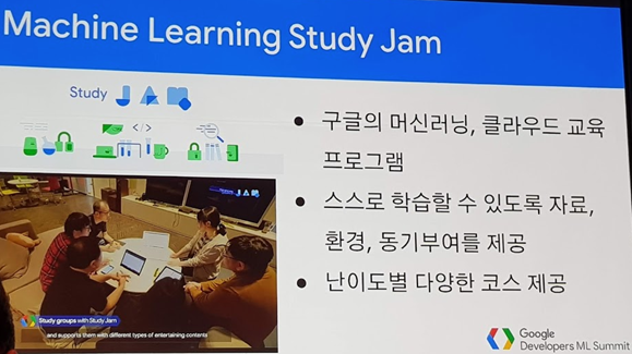 특히, 2019 올해는 머신러닝 스터디 잼, 클라우드 스터디 잼 등 사람들이 스스로 학습할 수 있도록 지원하는 프로그램을 활성화 하고 잇다.